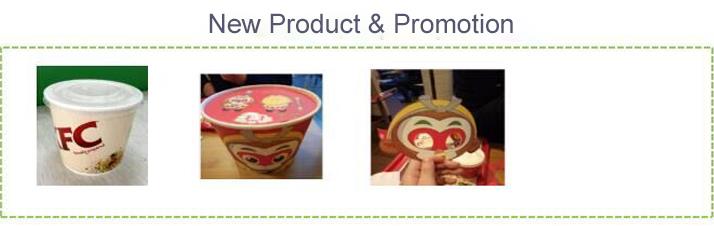 Jako je KFC hlavních papíru kontejner dodavatel v Číně trhu schopnost inovace Pando poskytla nevyhnutelné zdroj lokalizace pro KFC. V roce 2014-2015, Pando úspěšně vyvinula některé velmi inovativní obalové řešení pro KFC, včetně: ražba šálek kávy, sdílet talíř, hrnek polévkový, svolení odejít misku a atd. Šálek kávy Arabica 1 speciální tenký papír jako vnější vrstva, která se vyrábí v dlouhé vlákno a s vysokou elasticitu. To by mohlo reliéfní k jakémukoli stylu snadno. 2. Používejte materiál méně papíru (pouze 150g) být mnohem více šetrné. 3. Přizpůsobte, ražba jako zákazníka logo nebo jiný design.